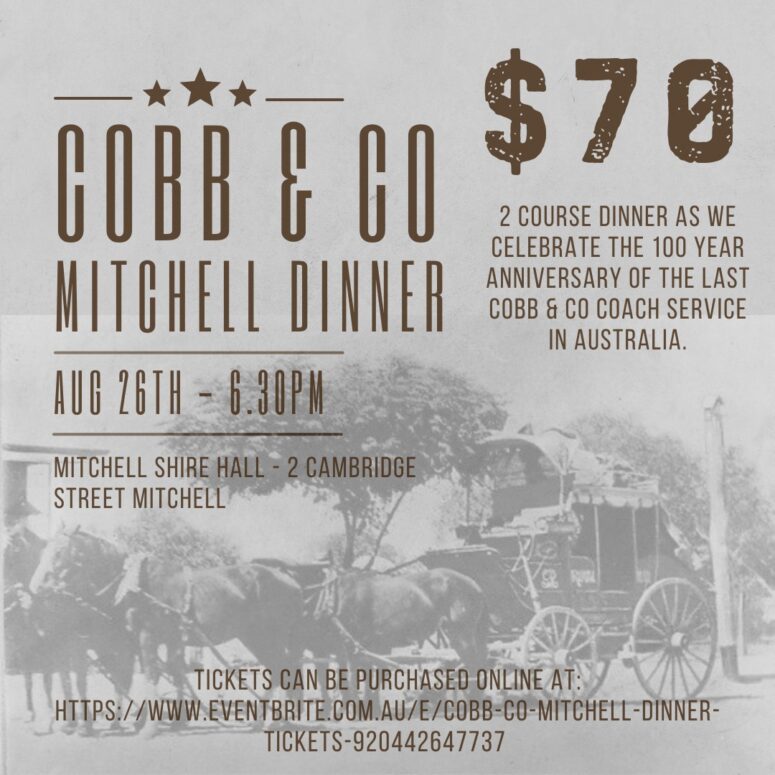Enjoy a delicious 2 course dinner as we celebrate the 100-year anniversary of the last Cobb & Co coach service in Australian History.