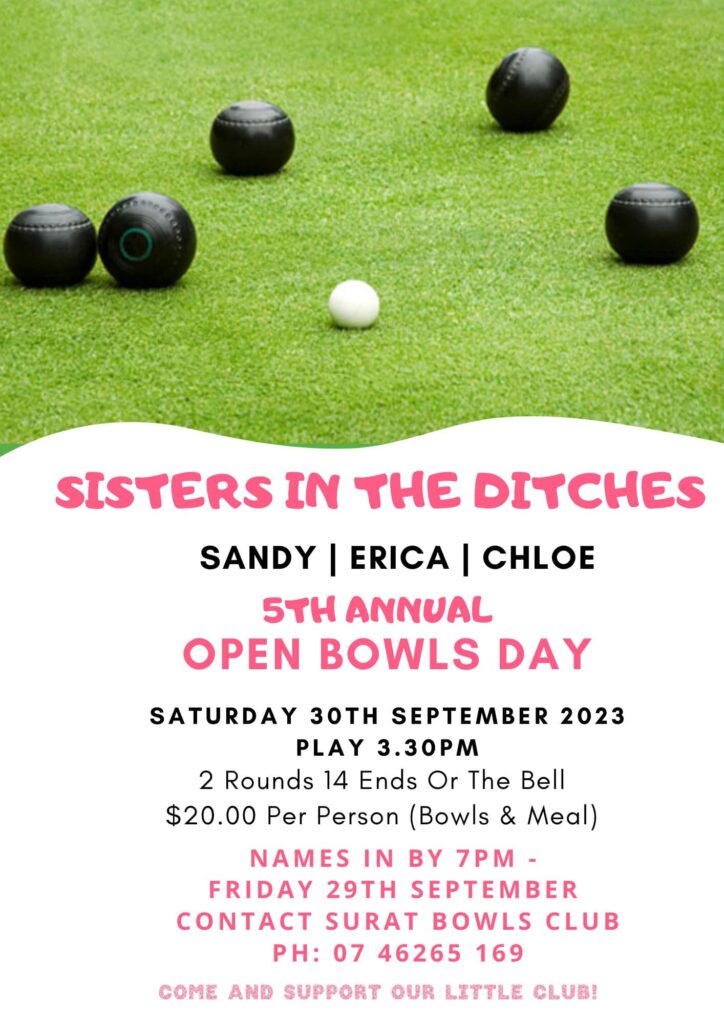 Join them for the 5th Annual Open Bowls Day. 2 rounds 14 ends or the bell Price includes Bowls and Meal