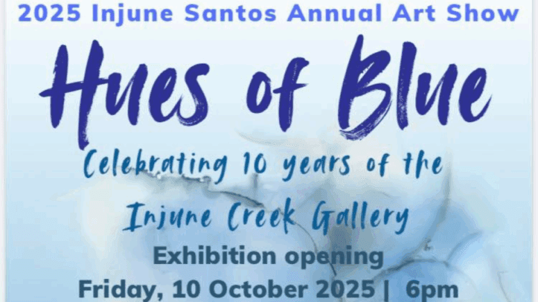 Celebrate ten years of the Injune Creek Gallery with the ‘Hues of Blue’ annual exhibition opening night.
