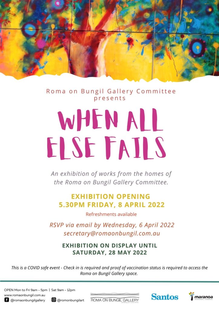 Roma on Bungil Gallery Committee presents When All Else Fails, an exhibition of works from the homes of the Roma on Bungil Gallery Committee. Exhibition on display until Saturday 28 May, 2022 Opening Hours Monday – Friday 9am to 5pm Saturday …